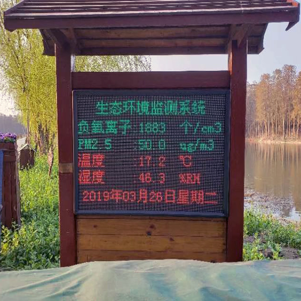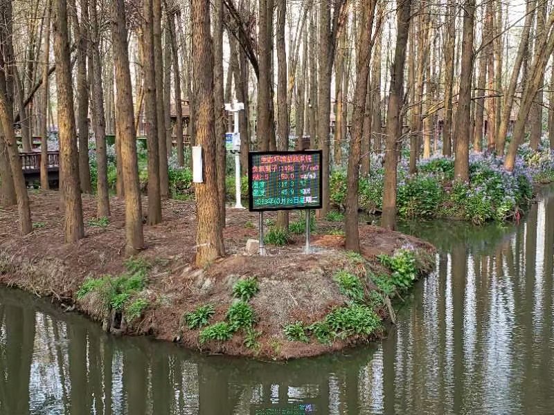 景區名稱:中國·李中水上(shàng)森林公園 地址(zhǐ):泰州(zhōu)市興化市李(lǐ)中鎮(zhèn)蘇宋村 配(pèi)置:景區通用四參數,采用“一(yī)對二”無(wú)線(xiàn)傳輸方案,1套監測設備同時遠程發(fā)布數據到兩塊LED大屏顯示