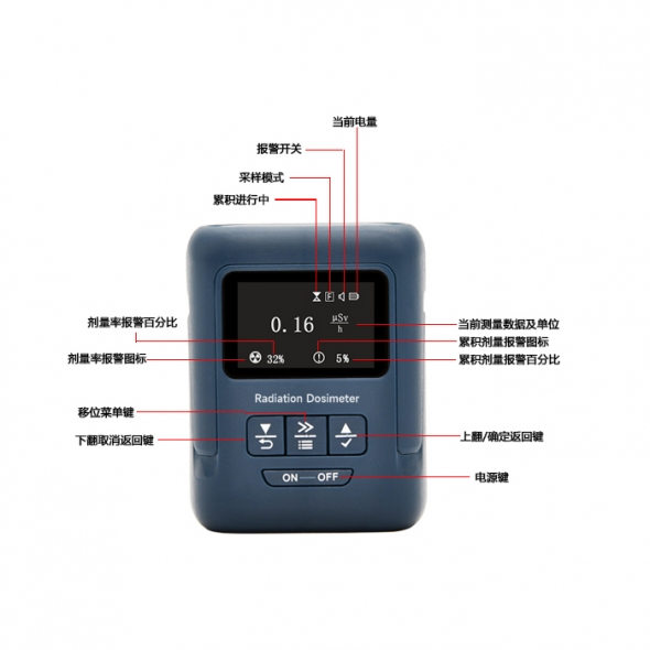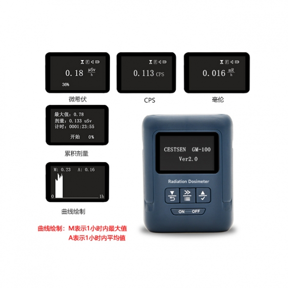 GM-100係列個人劑量儀能夠(gòu)實時快速的檢測環境中或產品的硬β,γ和(hé)X射線,並(bìng)快速尋找放射源。儀器可設(shè)定的(de)報警閾值和劑量模式更適用於醫療防護,核電廠、X光機、輻射泄露等各(gè)種輻射防護領域。