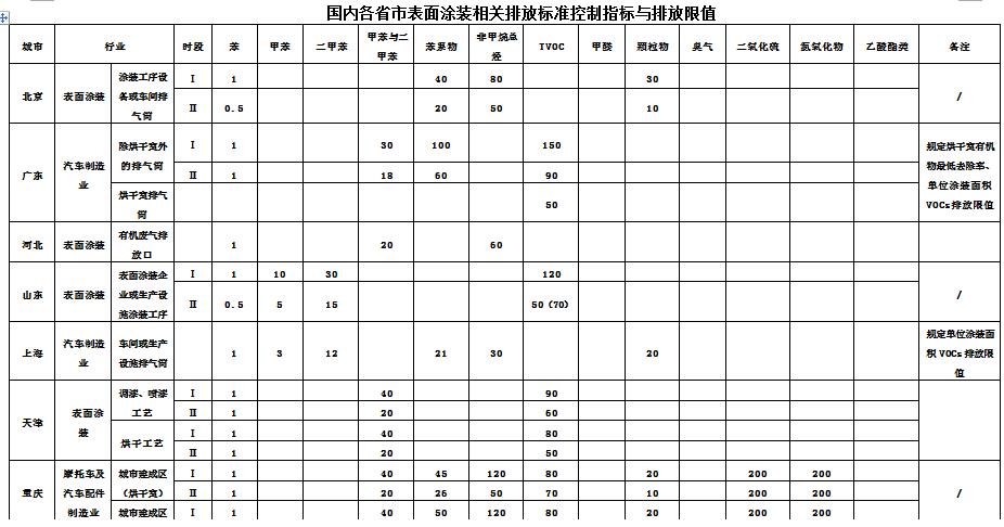 各省市(shì)汽(qì)車表麵塗裝VOCs排放標準匯總及(jí)對比